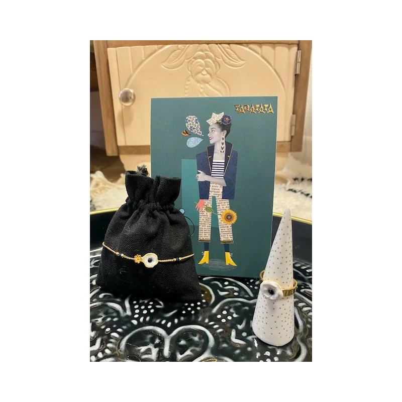 CompositionMétal, résines colorées dont les motifs sont peints à la main, perles en verre, strass