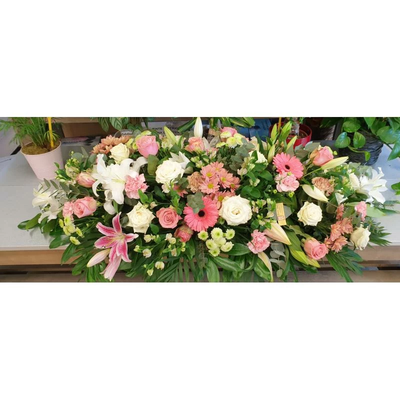 Gerbe réalisée avec des fleurs de saisons et suivant arrivage