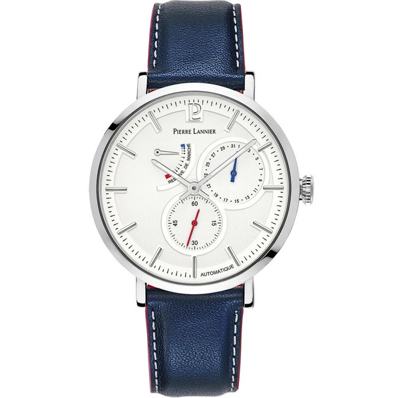 Montre Homme PIERRE LANNIER, Evidence Automatique Acier Argent Et Cuir Bleu