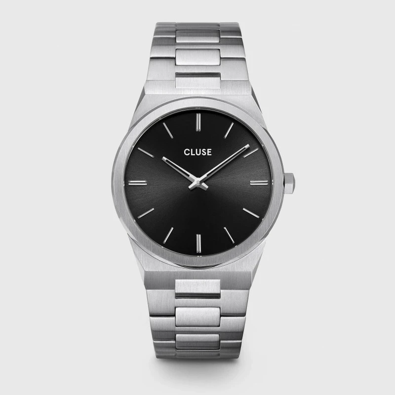 Montre Homme Vigoureux Argentée Bracelet Maillons Fond Noir Cluse