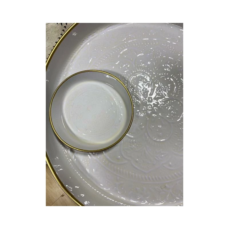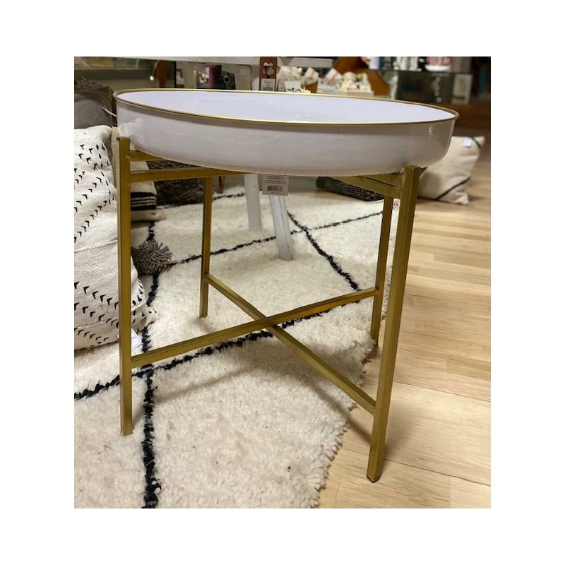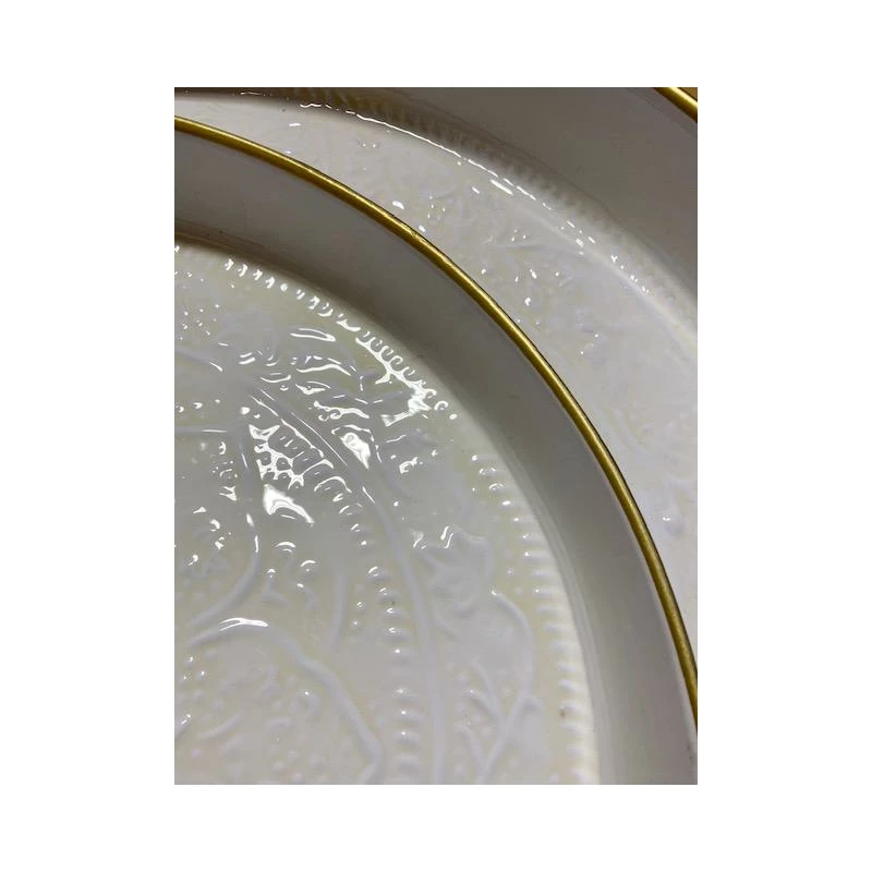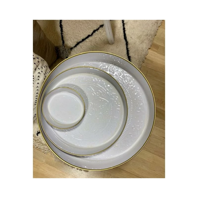 Couleur blanc, filet doré sur les bords.