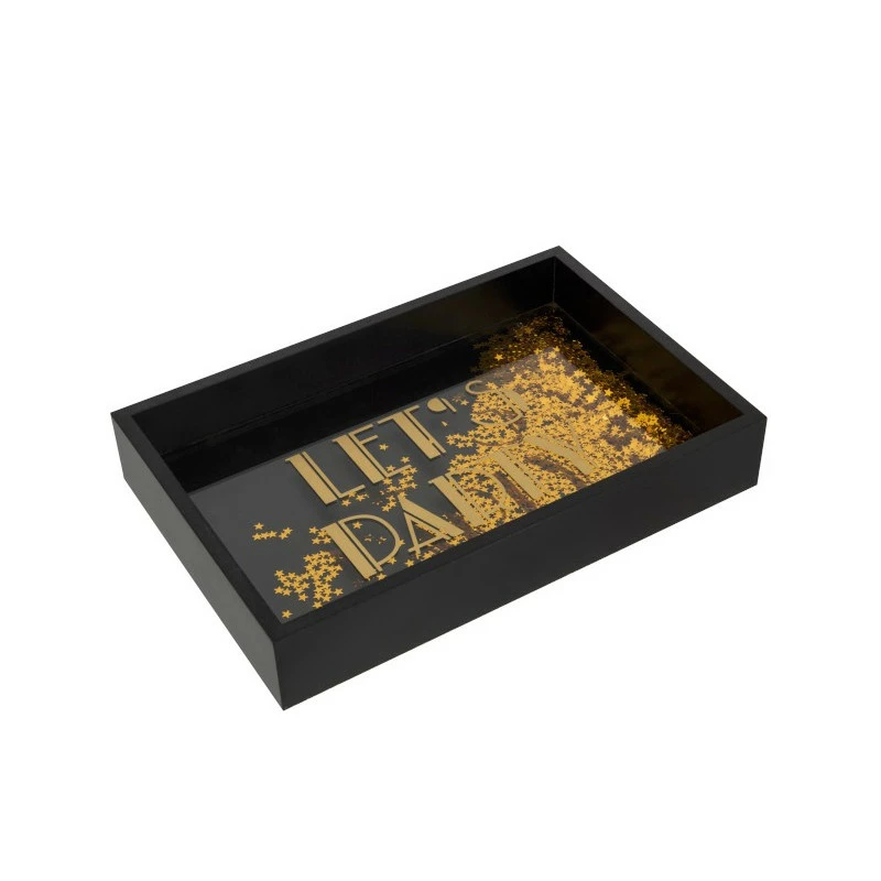 Plateau "Let's Party" Avec Paillettes Or Sur Fond Noir