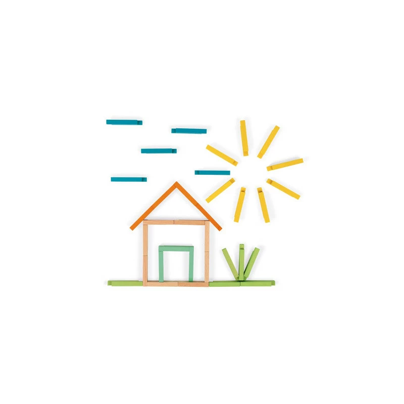 Cette activité est idéale pour développer la concentration visuo-spatiale. Les blocs en bois sont peints avec de la peinture à l’eau. L’emballage Baril est super pratique pour pouvoir ranger toutes les pièces une fois le jeu terminé. Contenu: 60 pièces de construction, 4 cartes modèles recto-verso. Bois massif Hêtre, issu de forêts gérées durablement.