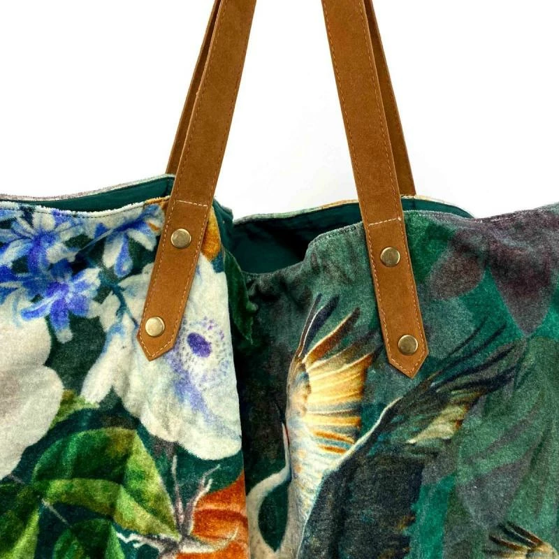 Un joli grand sac en velours vert, élégant pour voler la vedette . Avec une poche intérieure pratique et un bel imprimé floral chic. La taille de l’acheteur est de 55x55cm.