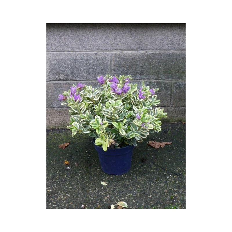 Potée de véroniques panachées, contenant de 20 cm de diamètre environ.